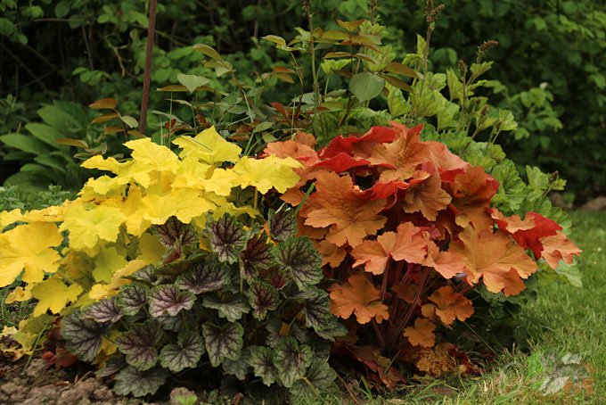 Heucheras Citronelle (Delabroye), Beauty Color, Caramell und var. Green-Globe